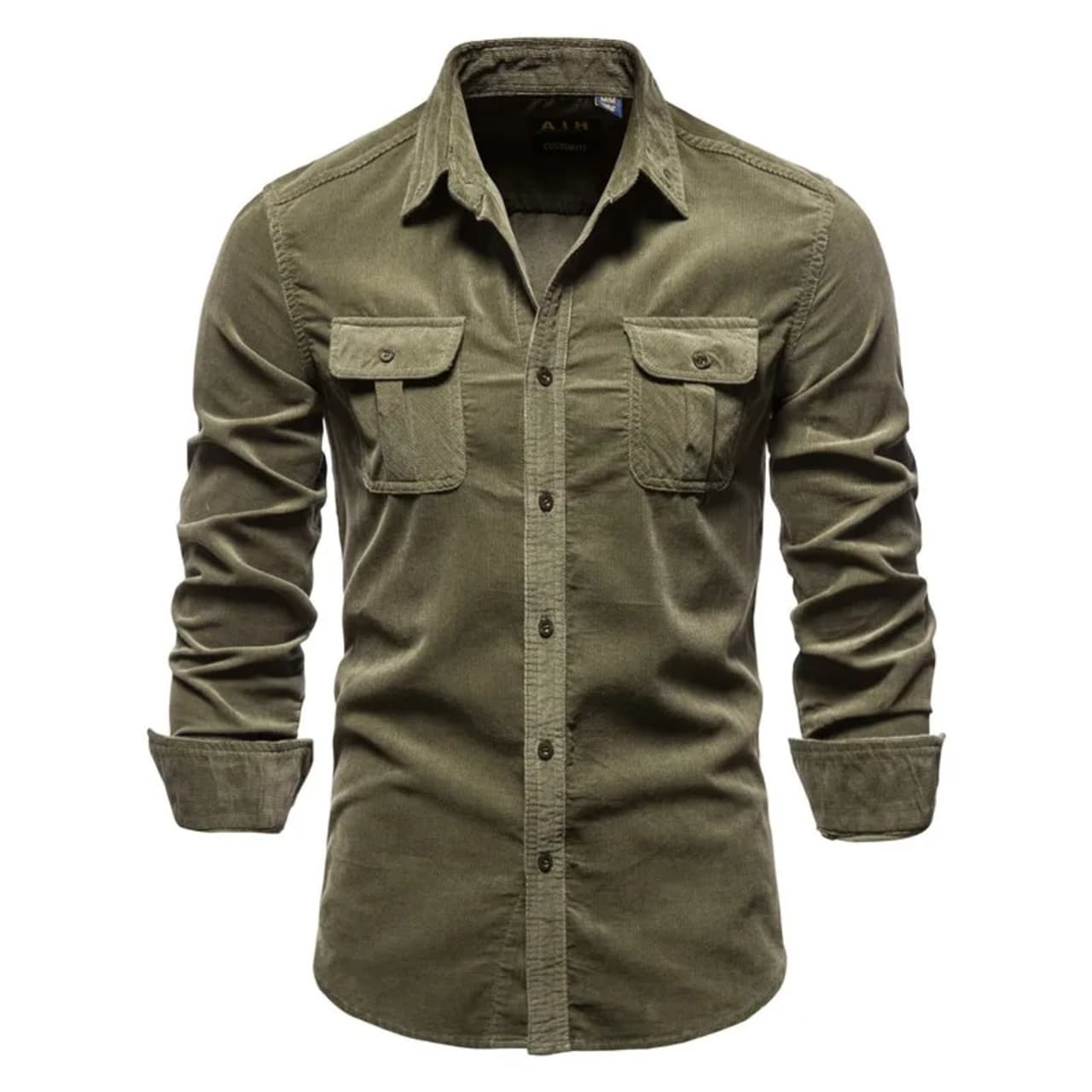 2021ใหม่เดียวผ้าฝ้าย100% เสื้อเชิ้ตผู้ชายแฟชั่นสีทึบ Corduroy ผู้ชายเสื้อเชิ้ตฤดูใบไม้ร่วง Slim เสื้อผู้ชาย
