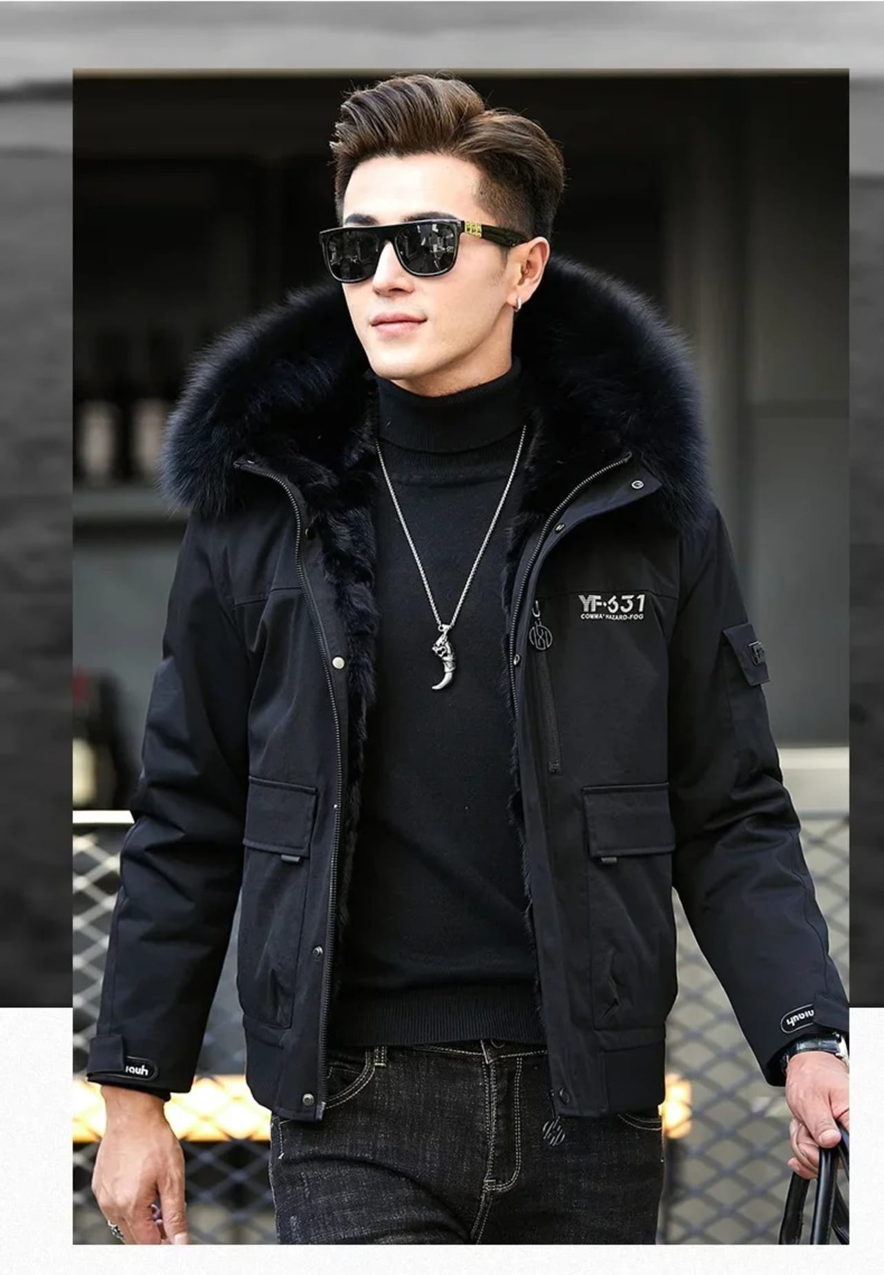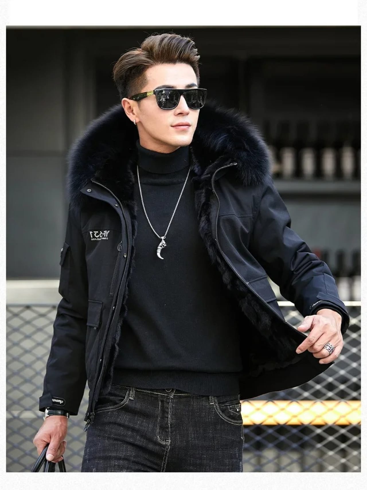 เสื้อคลุมขนสัตว์มิงค์สำหรับผู้ชาย, แจ็คเก็ตฤดูหนาวใหม่2024ขนเฟอร์ขนเฟอร์ขนเฟอร์ขนสุนัขจิ้งจอกปกขนกระต่ายเสื้อผ้าให้ความอบอุ่น