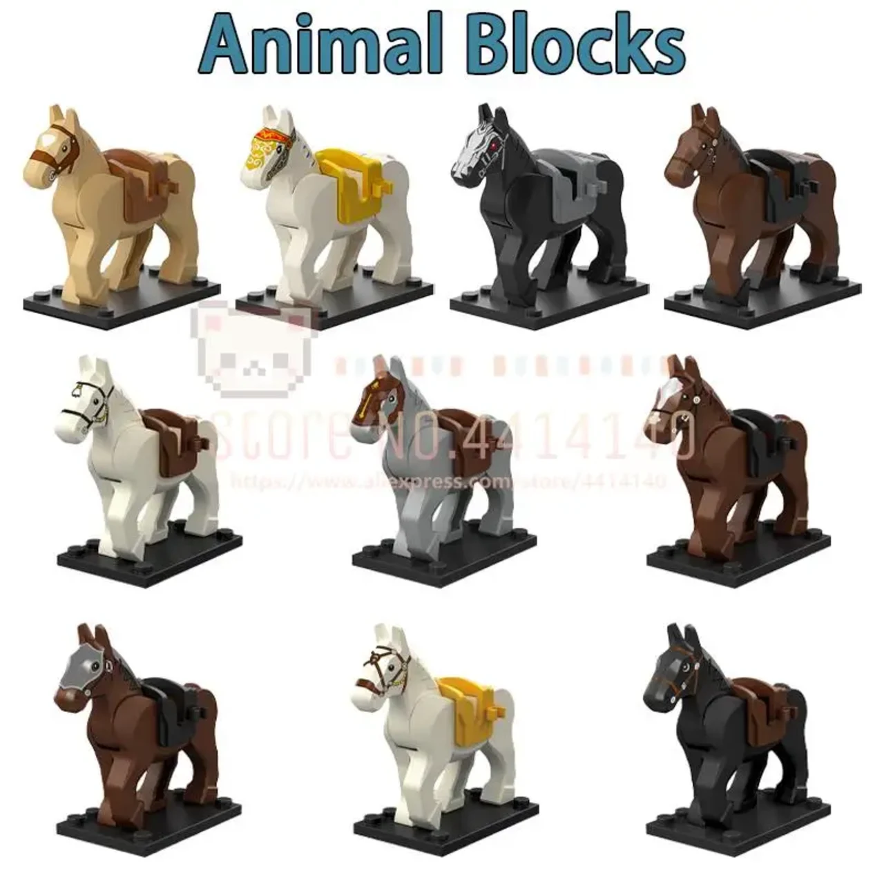 ชุดสัตว์ม้าบล็อกตัวต่อต่อสู้โบราณสำหรับเด็กรุ่นม้าของเล่นตุ๊กตาขยับแขนขาได้เหมาะกับการต่อสู้แบบ DIY