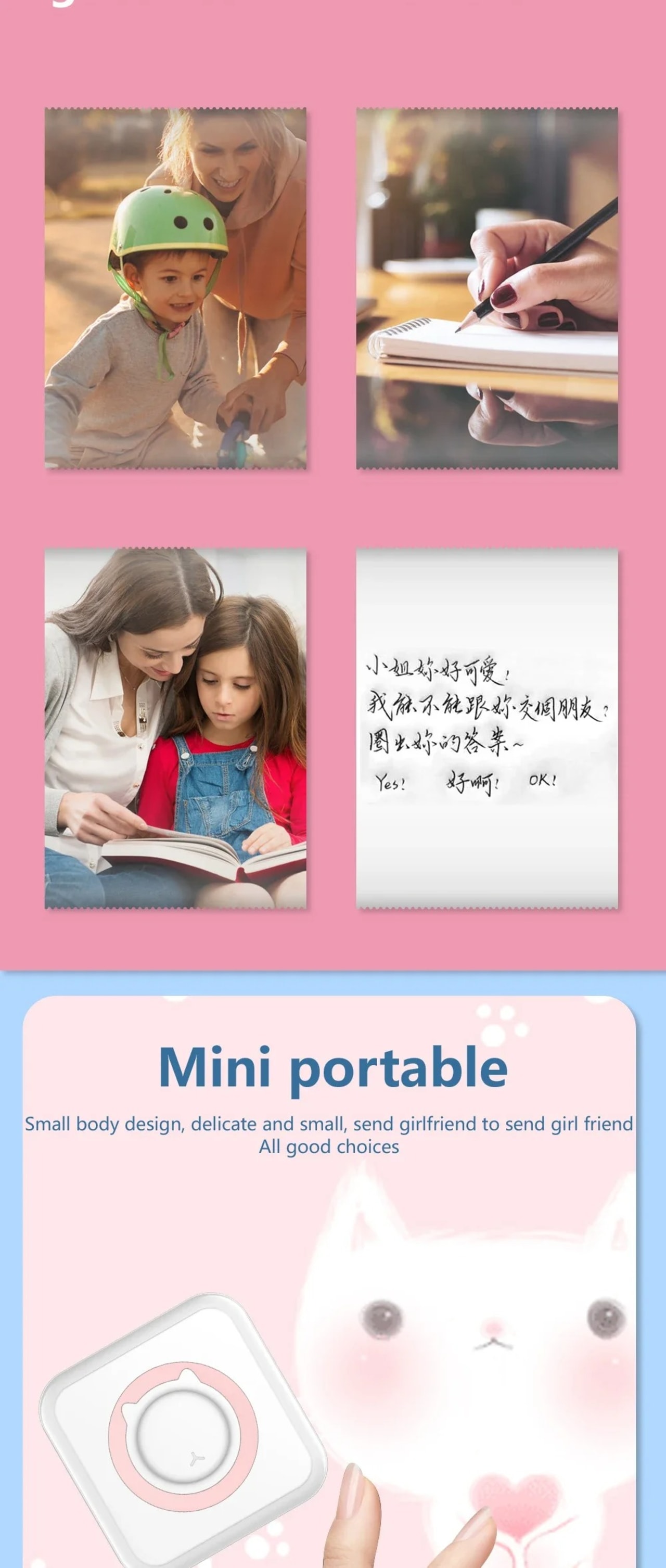 มินิพริ้นท์พิมพ์ภาพ HD น่ารักฉลากกาวกันความร้อนขนาดเล็กแบบพกพาสำหรับติดฉลากไร้หมึกบลูทูธใช้งานได้หลากหลายสำหรับสติกเกอร์