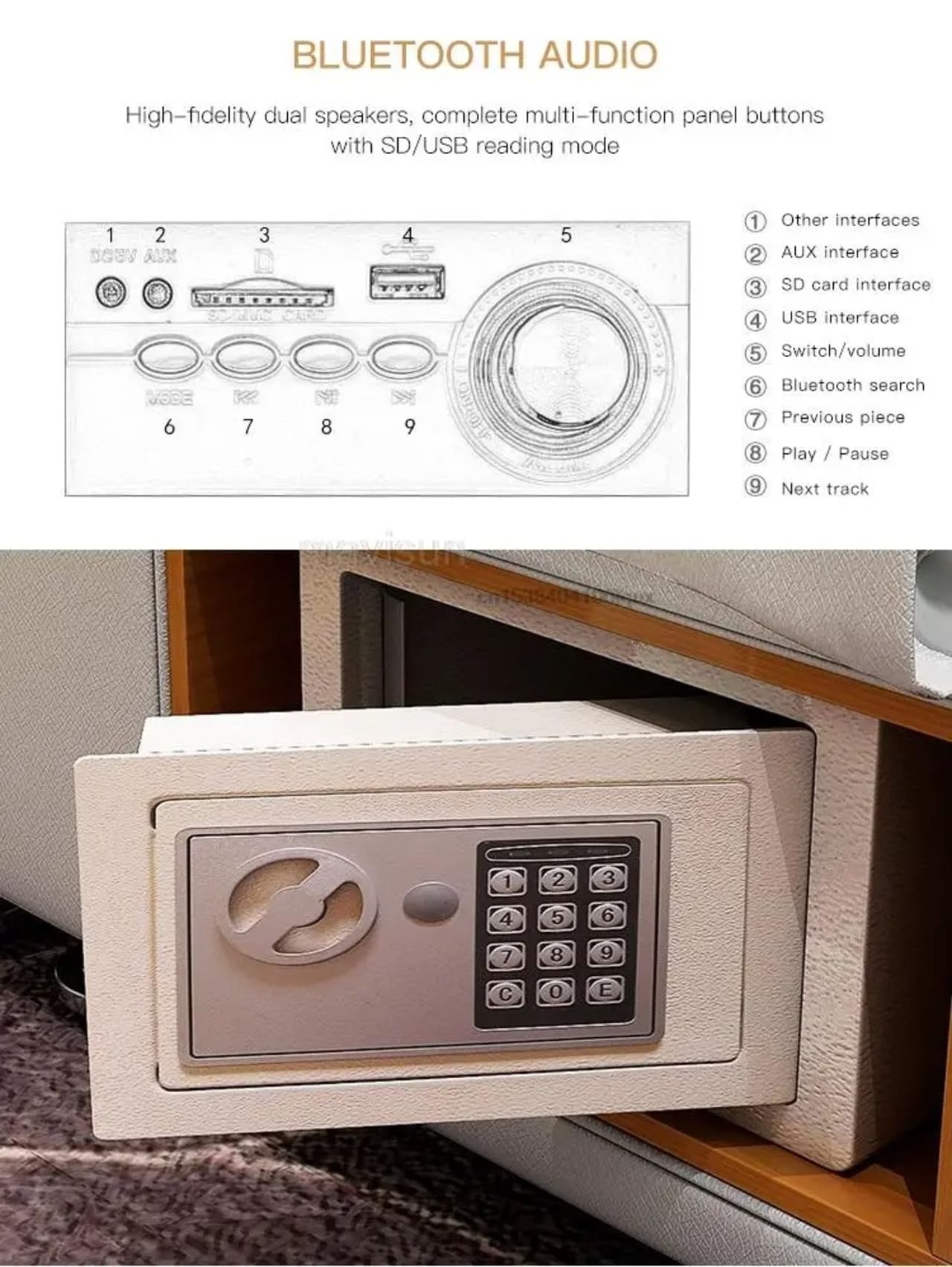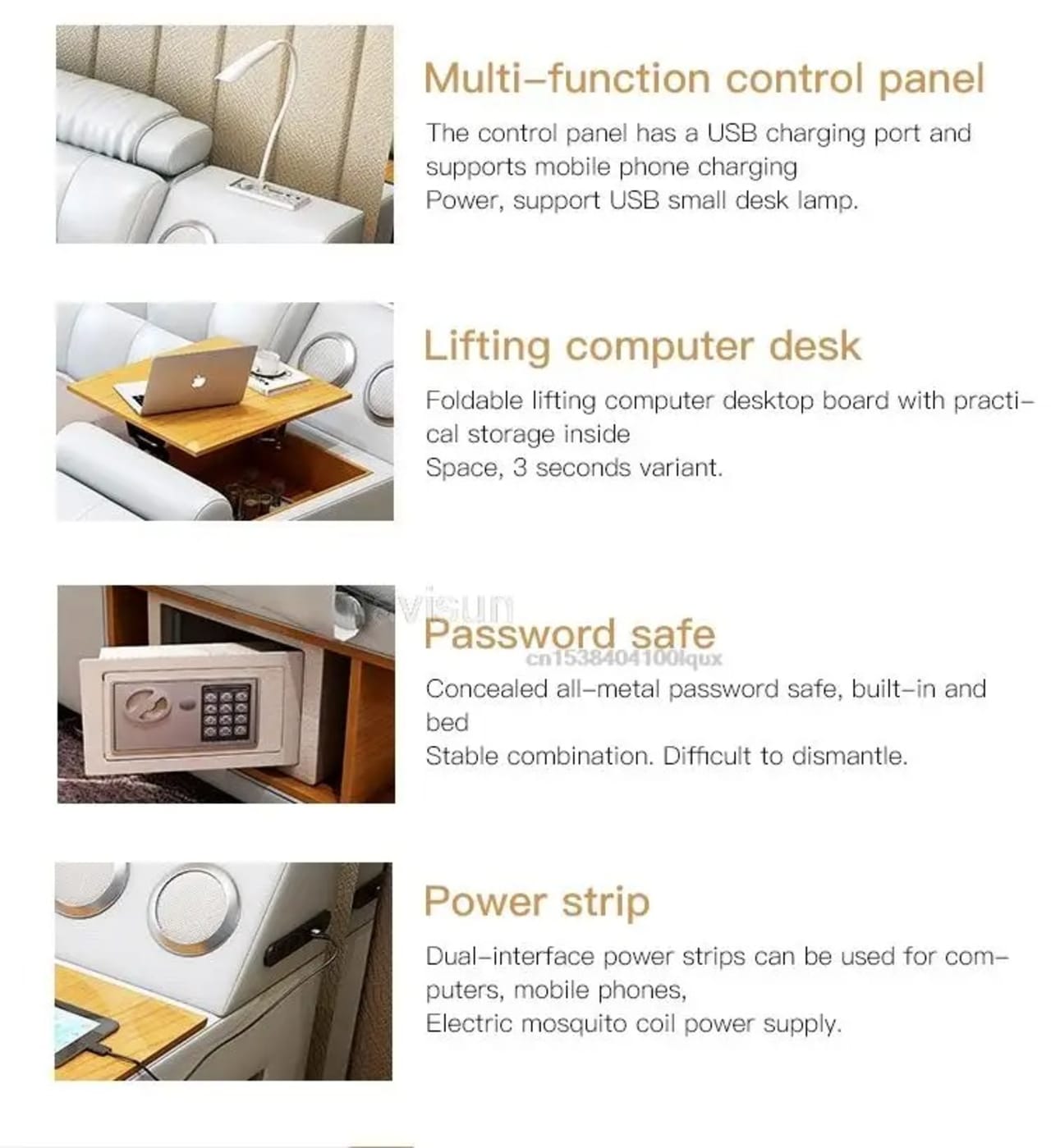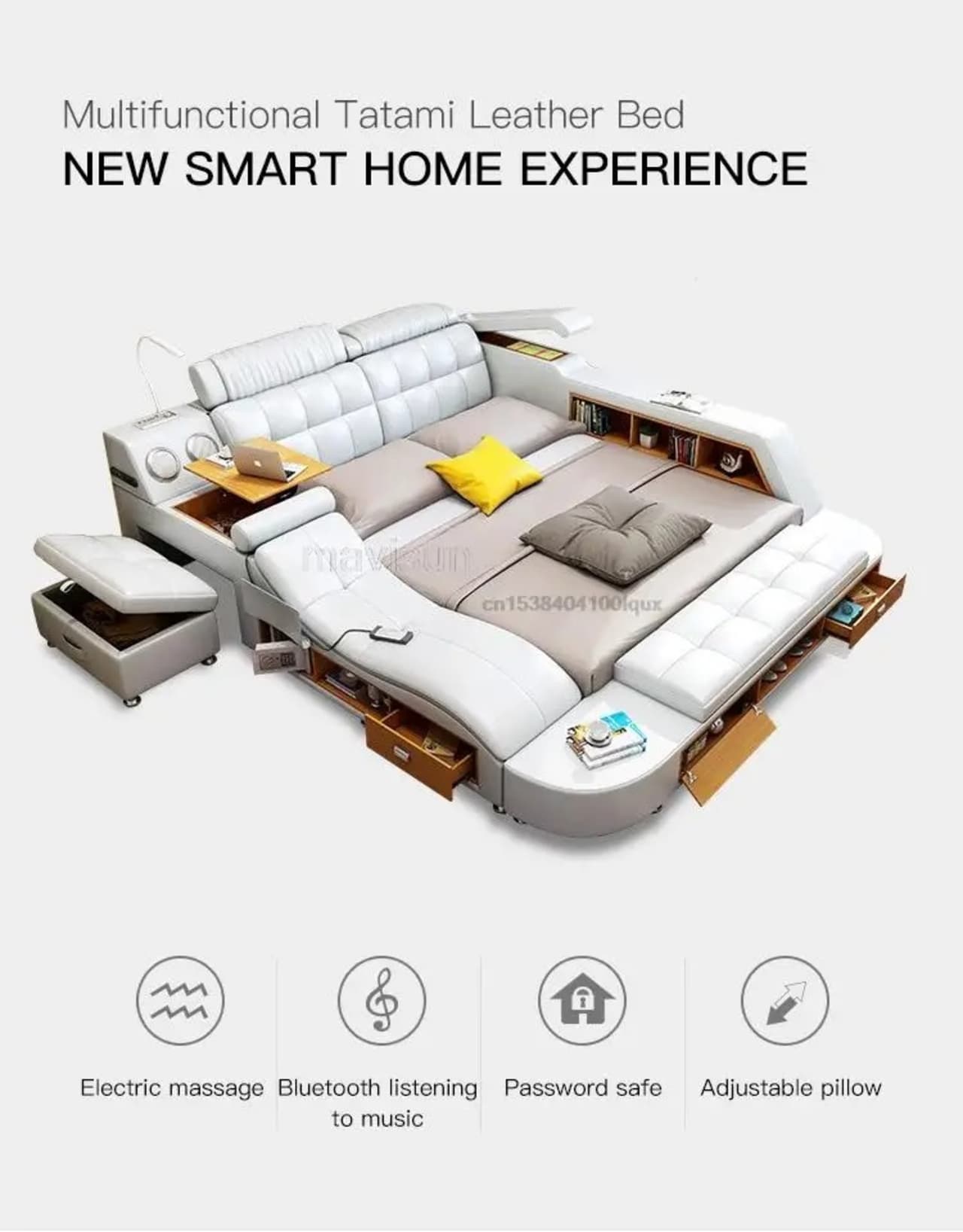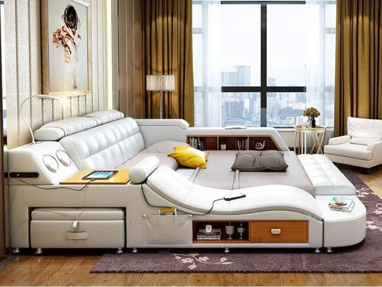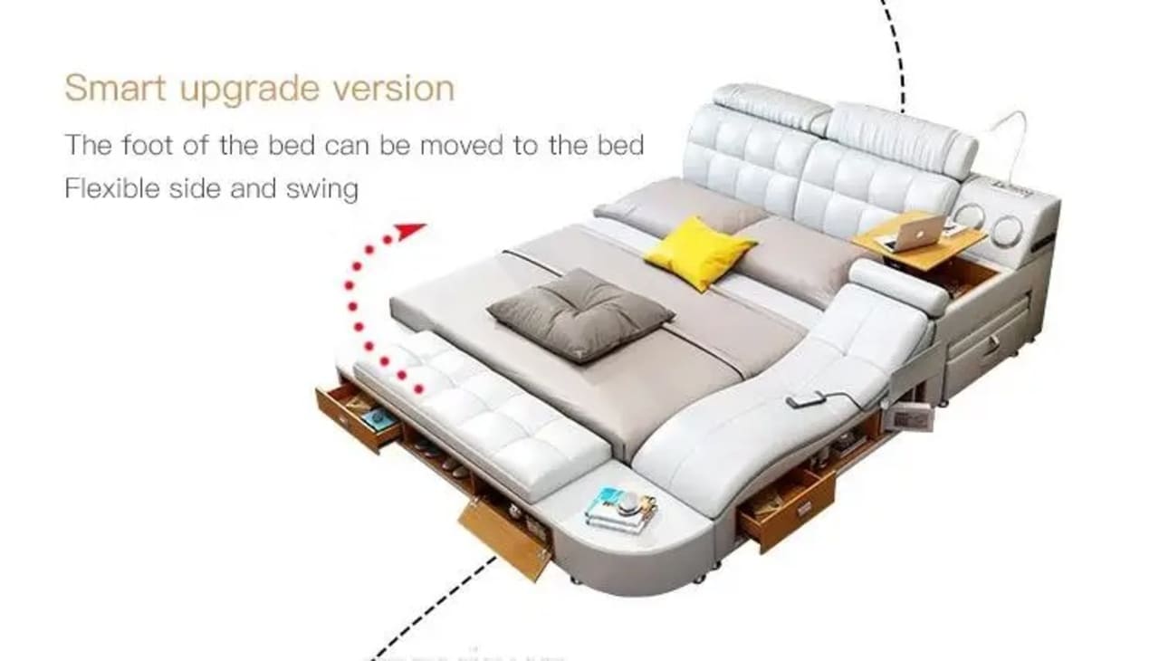 ก. เตียงมาพร้อมกับลำโพงบลูทูธอัจฉริยะโคมไฟตั้งโต๊ะเก้าอี้นวดไฟฟ้าตู้นิรภัยรหัสผ่านพอร์ตไฟฟ้าฯลฯช่วยให้คุณมีชีวิตที่ชาญฉลาดและสะดวกสบาย