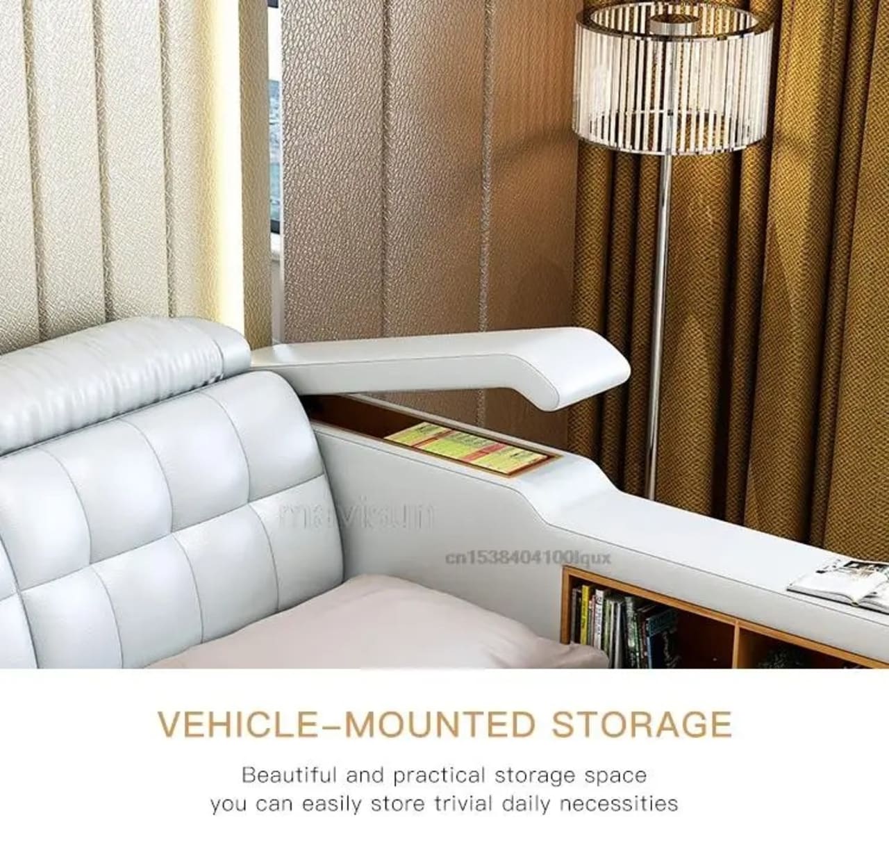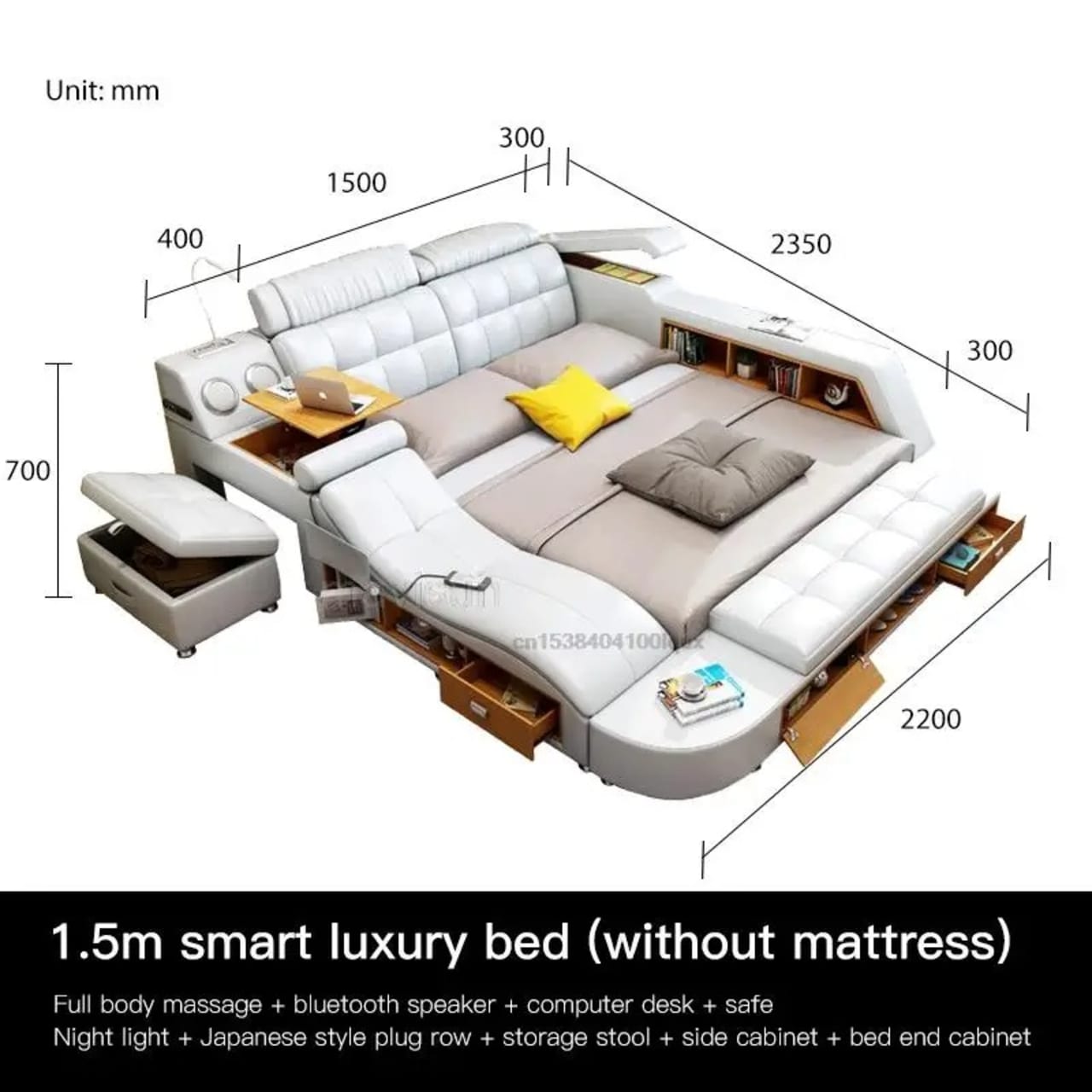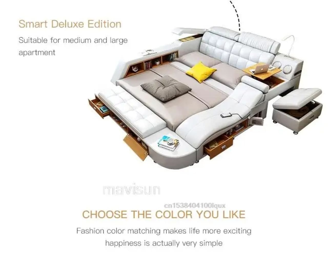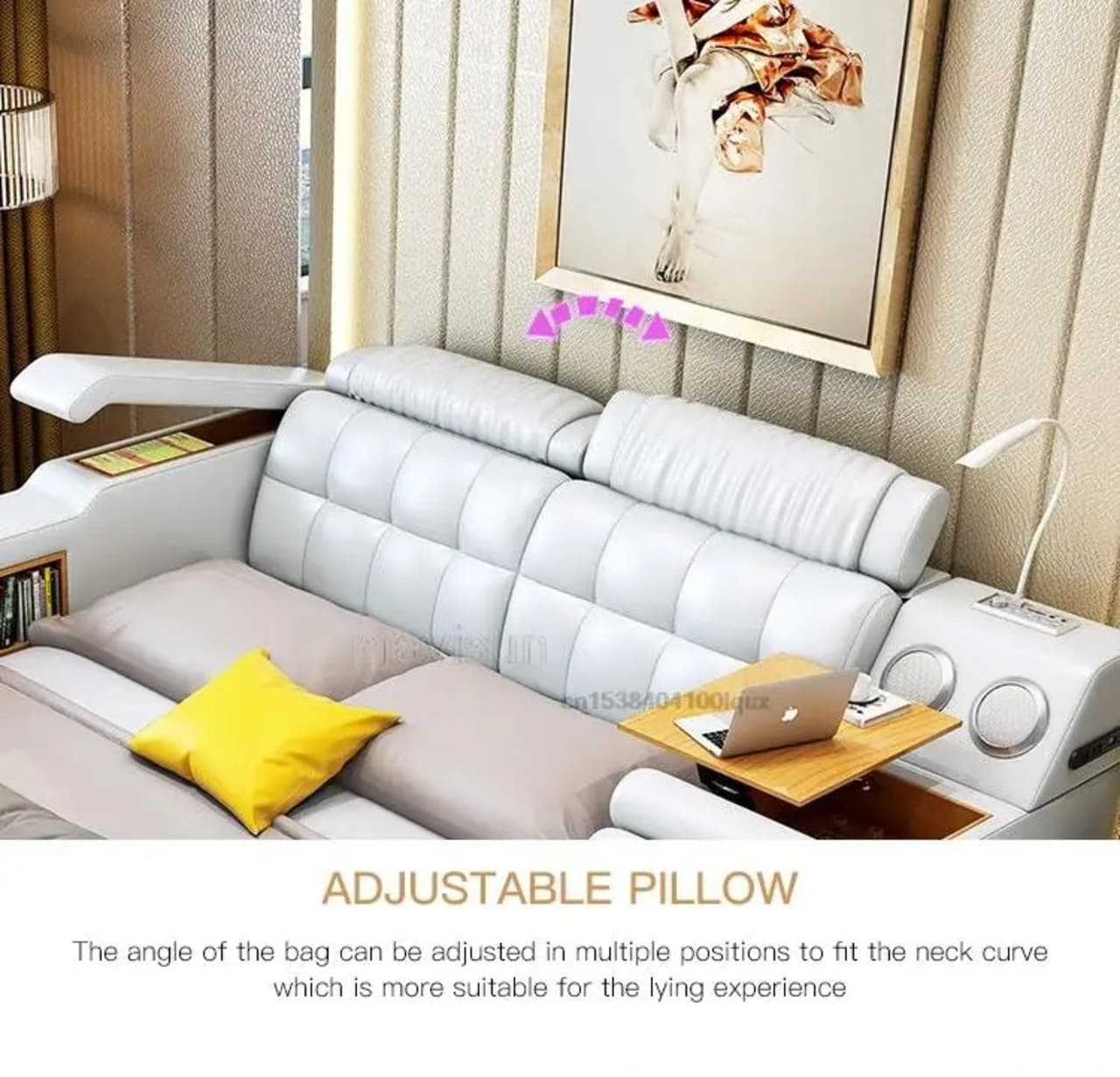 ก. เตียงมาพร้อมกับลำโพงบลูทูธอัจฉริยะโคมไฟตั้งโต๊ะเก้าอี้นวดไฟฟ้าตู้นิรภัยรหัสผ่านพอร์ตไฟฟ้าฯลฯช่วยให้คุณมีชีวิตที่ชาญฉลาดและสะดวกสบาย