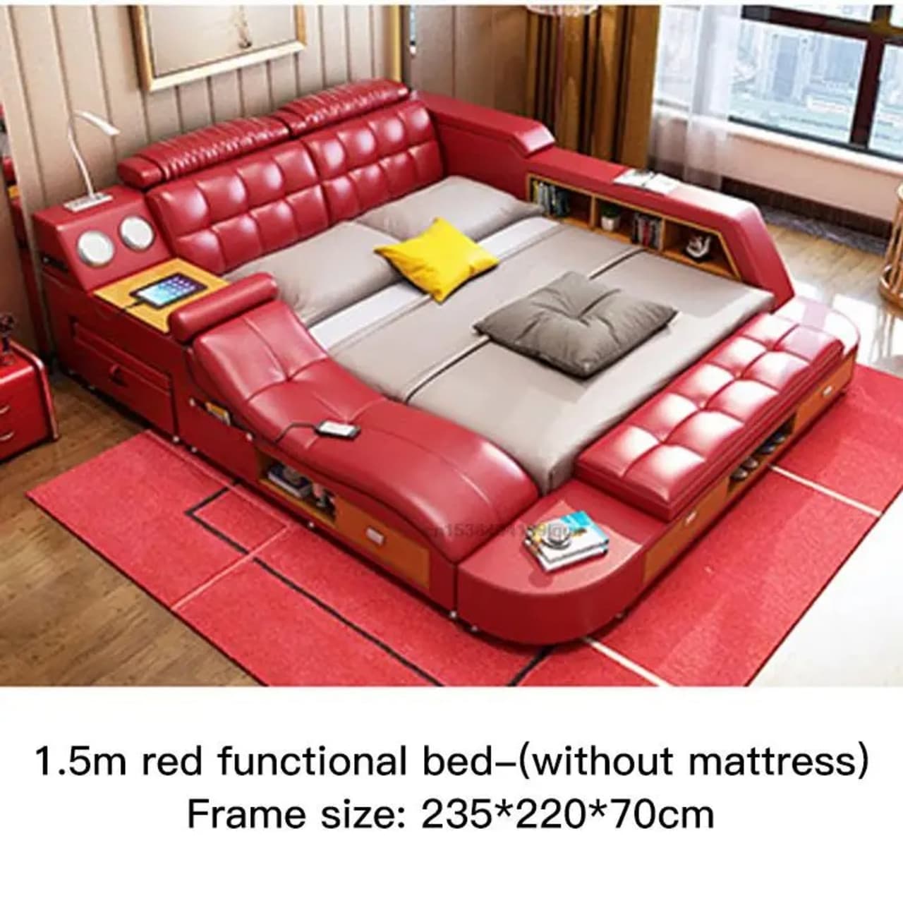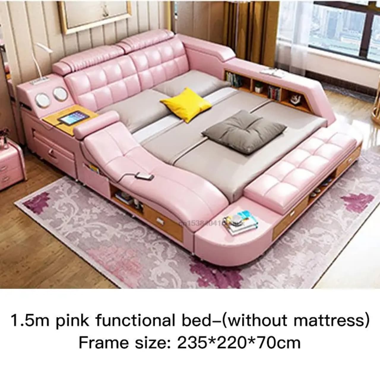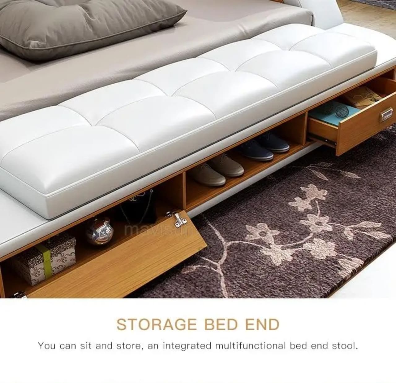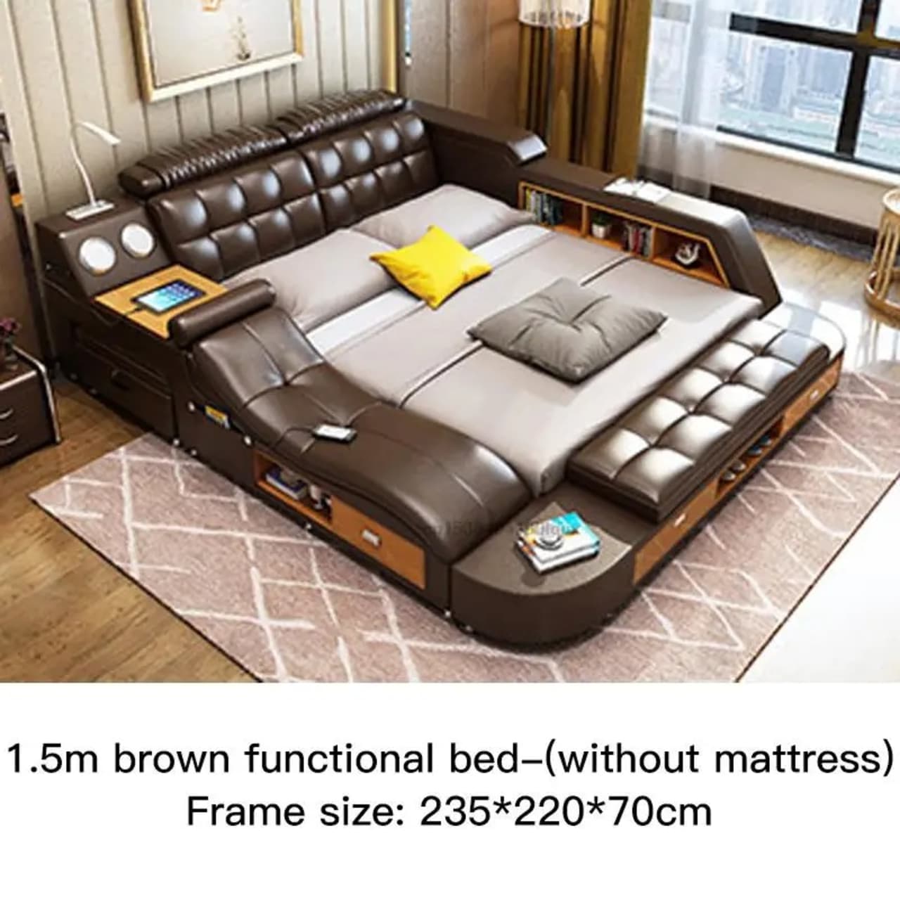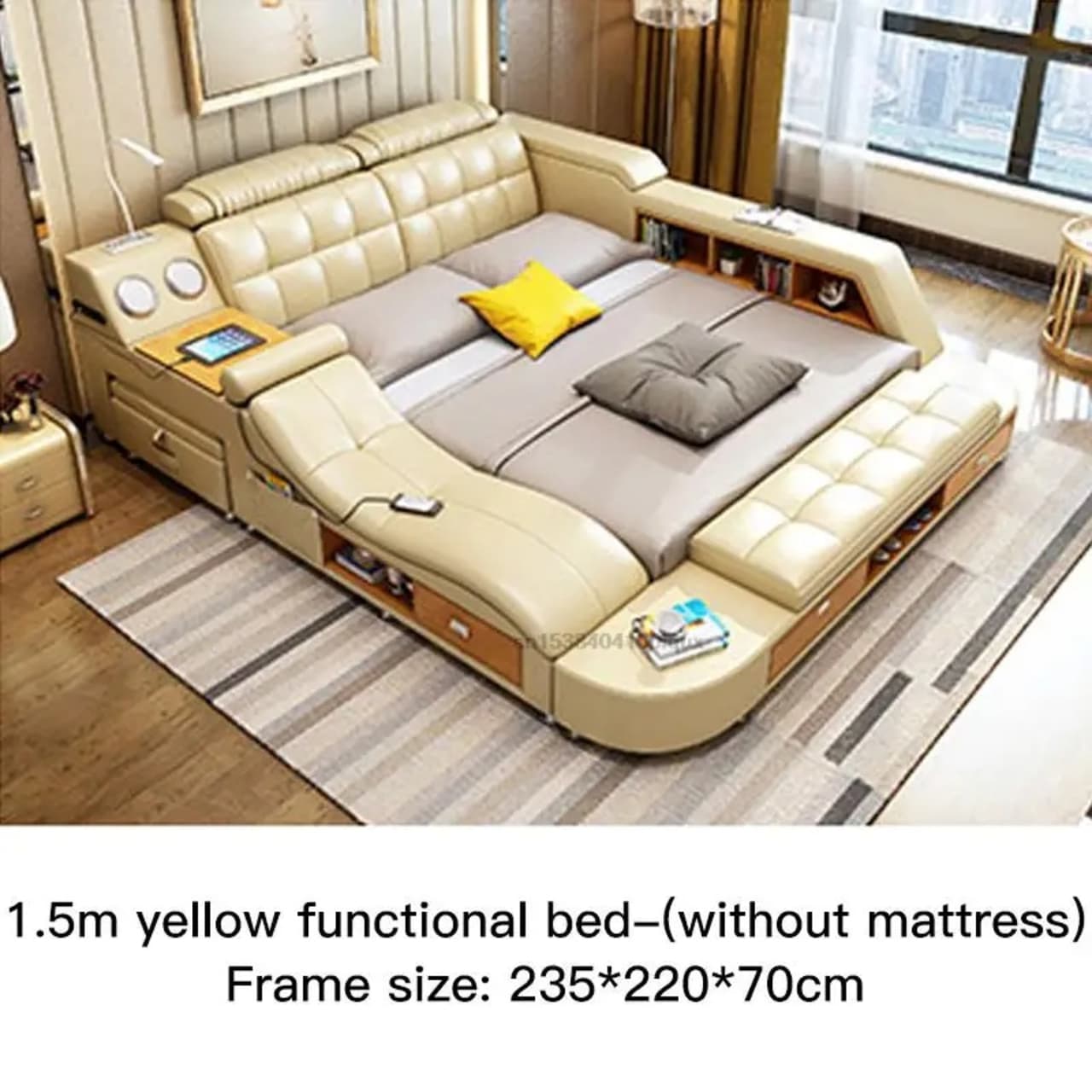 เตียงควีนไซส์หนังสำหรับห้องนอนเตียงควีนไซส์อเนกประสงค์เตียงอัจฉริยะทันสมัยพร้อมที่เก็บของเฟอร์นิเจอร์ห้องนอนหรูหรา